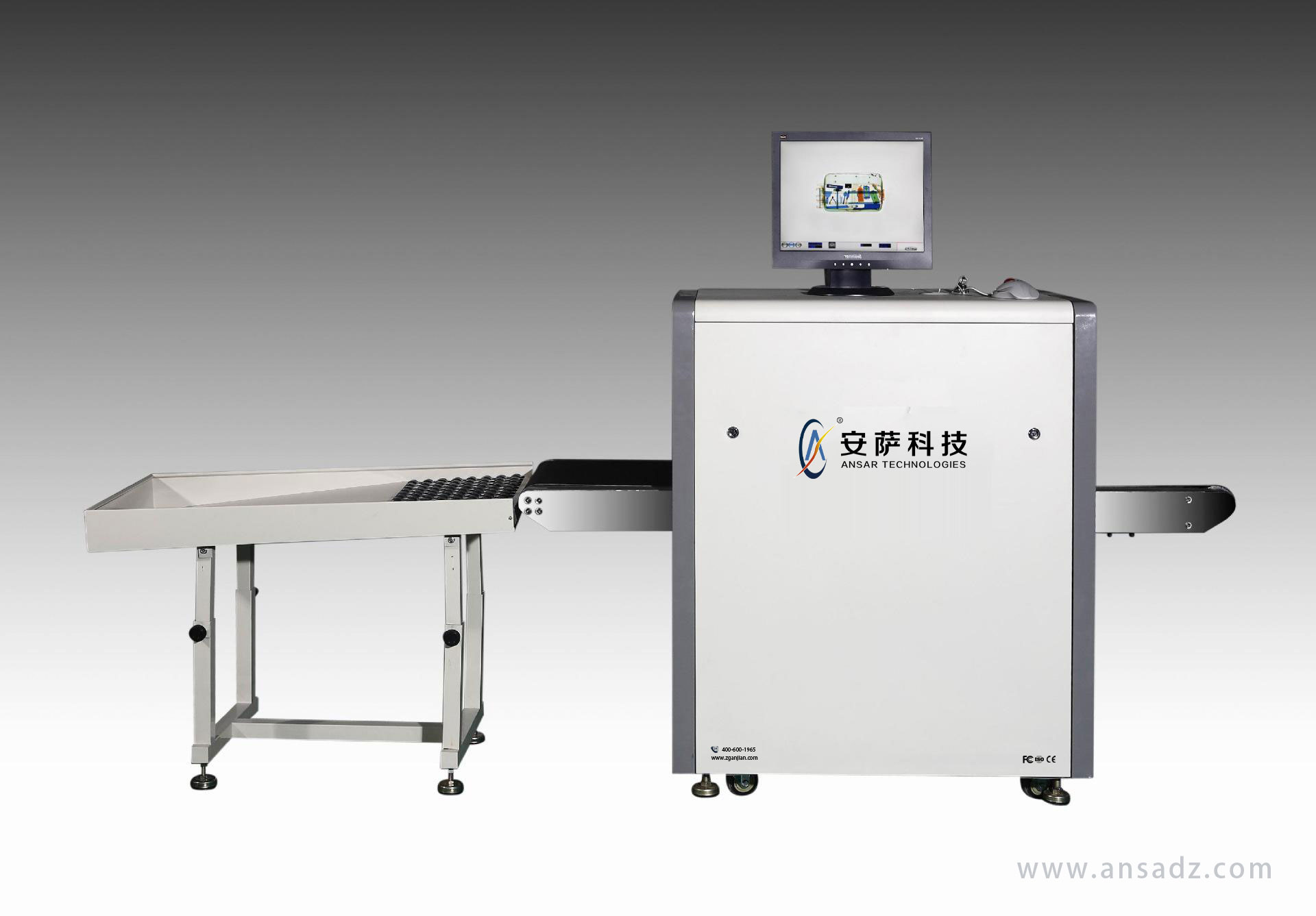 這套檢測系統利用x光透視物品,將物品的形狀和圖像轉換后顯示在X光安檢機的顯示屏上。工作人員分析顯示的圖像以檢測禁止攜帶的危險物品,從而防止危險物品在珠寶店內被攜帶進入。